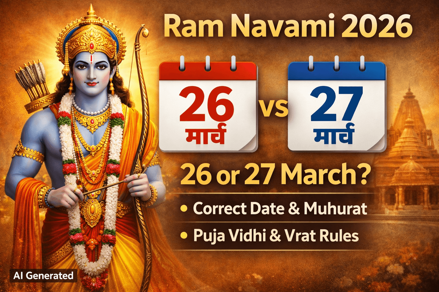 Ram Navami 2026: कब है 26 या 27 मार्च? जानिए सही तारीख, शुभ मुहूर्त, व्रत और पूजा विधि Ram Navami 2026: कब है 26 या 27 मार्च? जानिए सही तारीख, शुभ मुहूर्त, व्रत और पूजा विधि aalok March 20, 2026 0 राम नवमी 2026 कब है? 26 या 27 मार्च के कन्फ्यूजन को खत्म करते हुए जानिए सही... Read More Read more about Ram Navami 2026: कब है 26 या 27 मार्च? जानिए सही तारीख, शुभ मुहूर्त, व्रत और पूजा विधि